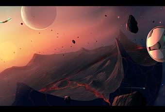 Nuevos trabajos del ilustrador checo Josef Bartoň – que firma como JoeJesus – y del que no puedo decir mucha cosa más aparte de su gusto por retratar planetas y escenarios espaciales. Podéis ver más trabajos en deviantART. Clic para ampliar.