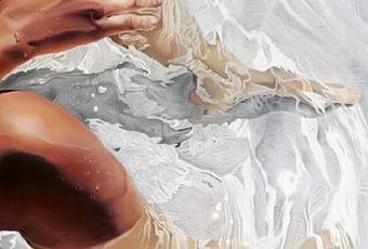 La primera impresión que me transmitieron sus cuadros fue la de frescor. La refrescante sensación de un baño en un caluroso día veraniego. Las cristalinas aguas de sus pinturas invitan a que te sumerjas en ellas. Y una vez zambullida, eres capaz de apreciar la maestría con la que captura la luz del mediterráneo, como juega con esta tanto en el agua como sobre las formas, creando transparencias y reflejos que forman imágenes tan reales que parecen fotografías.