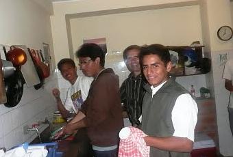 encontramos, todo un hormigueo a ritmo de cepillo, balde,…en comedor,