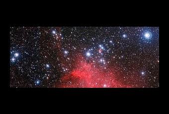 La mayor parte de las estrellas no se forman solas, sino rodeadas de “hermanos y hermanas” que se crean más o menos al mismo tiempo a partir de una única nube de gas y polvo. NGC 3572, en la constelación austral de Carina, es uno de esos cúmulos. Contiene muchas jóvenes estrellas calientes de color blanco-azuladas que brillan intensamente y generan potentes vientos estelares que tienden a dispersar gradualmente los restos de gas y polvo de sus alrededores. Las resplandecientes nubes de gas y los cúmulos estelares que les hacen compañía son los protagonistas de una nueva imagen obtenida por el instrumento Wide Field Imager, instalado en el telescopio MPG/ESO de 2,2 metros en el Observatorio La Silla de ESO, en Chile.