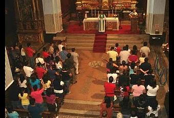 Entraron a nuestra iglesia con gran silencio y recogimiento. Después recitaron la oración matutina de la Iglesia, las Laudes, las cuales fueron presididas por el P. José Luis González, sacerdote diocesano del Seminario Redentoris Mater de la República Dominicana, quien realiza su labor misionera en Iquitos, selva peruana. Era hermoso contemplar una asamblea viva, unida, cantando al unísono las alabanzas a Dios uno y trino. Es a lo que nos exhorta el Papa Benedicto XVI en la Exhortación Apostólica Verbum Domini: “de que se difunda más en el pueblo de Dios este tipo de oración, especialmente la recitación de Laudes y Vísperas. Esto hará aumentar en los fieles la familiaridad con la Palabra de Dios” Conociendo la Palabra de Dios podemos dar razón de nuestra esperanza en Jesucristo, podemos estar verdaderamente “arraigados y edificados en Cristo, firmes en la fe” (Col 2,7)