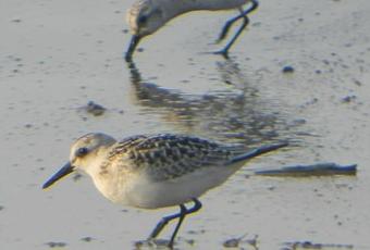 Con el correlimos común Calidris alpina sucede un tanto de lo mismo, en los grupos se observan adultos y juveniles, aunque estos últimos, como sucede con el tridáctilo, ya son mayoría.