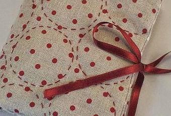 He usado los mismos linos que en el anterior, porque me parecen divinos.Como nos pasa a todas, que no podemos hacer dos iguales, en este caso le he añadido el porta anillos y he cambiado las cintas de color champán por éstas en color corinto.