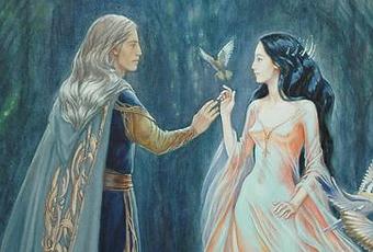 No dijo Melian ni una palabra, pero anegado de amor, Elwë se le acercó y le tomó la mano, y en seguida un hechizo operó en él, de modo que así permanecieron los dos mientras las estrellas que giraban por encima de ellos medían los largos años, y los árboles de Nan Elmoth se volvieron altos y oscuros antes de que ninguno pronunciara una palabra.