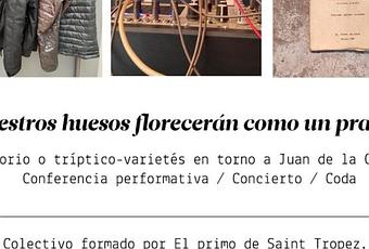 Hace unos meses os presentábamos en este blog el proyecto «Vuestros huesos florecerán como un prado», un Oratorio o tríptico-varietés en torno a Juan de la Cruz: Conferencia performativa / Concierto / Coda.