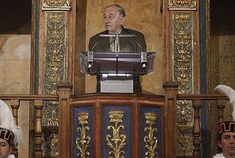 © EFE/J.J. Guillén/rtve.esComo siempre, en primera fila. Instalado en casa, cómodamente instalado en mi salón, un año más volví a ver y a escuchar el discurso del Premio Cervantes ante SS. MM. los Reyes de España en el paraninfo de la Universidad de Alcalá de Henares. Disfruté con lo dicho por Juan Goytisolo, que tituló su texto A la llana y sin rodeos, con la expresión que don Quijote utiliza en el capítulo XXXVIII de la segunda parte de su novela. El discurso puede leerse ya en los medios; pero sin la dedicatoria inicial: «Quiero dedicar este Premio Cervantes de 2014 a mi maestro don Francisco Márquez Villanueva, catedrático de la Universidad de Harvard, in memoriam; y a los habitantes de la medina de Marraquech, que han sabido acogerme con cariño en esta etapa incómoda de la vida que es la vejez». No defraudó el escritor a quienes esperábamos el «fermento contestatario» de su escritura y que aludiese a la verdad menos vistosa de España —«paro, corrupción, precariedad, crecientes desigualdades sociales»—, de la que son responsables algunos de los que estaban sentados el jueves en la presidencia del acto, desde el rey al ministro. Concluyó con el contundente «Digamos bien alto que podemos», que ha llenado los titulares. Pero de su discurso también pueden extraerse constantes conocidas de su posición ante la literatura: su rechazo a la vida literaria, su reivindicación de la modernidad de cierta tradición, y, más allá, los valores destacados por el jurado del premio anunciado el pasado 24 de noviembre de 2014: «su capacidad indagatoria en el lenguaje, sus propuestas estilísticas complejas y su apuesta permanente por el diálogo intercultural». Más allá, porque Goytisolo se siente muy ajeno a estas síntesis exaltadoras y a este modo de celebración. Como el viernes, fatigado, buscando una columna o una pared donde sostribarse unos segundos con la mano de riñonera mientras era entrevistado, o a la espera de Sus Majestades Graciosas, tan espléndidamente retratadas en su integridad sobrehumana en Juan sin Tierra (1975). La mejor crónica que he leído de lo ocurrido la mañana del viernes en el paraninfo complutense lleva la firma de Javier Rodríguez Marcos, y lo he imaginado disfrutando de la conversación en casa del escritor hace unos días o mientras escribía el relato de la entrega del premio, como tantas veces cuando ha escrito sobre el autor de Paisajes después de la batalla (1982) he recordado nuestras conversaciones y un brillantísimo ensayo sobre La saga de los Marx (1993) que me entregó en un lejano curso de doctorado (1993-1994) sobre nuestro Juan Goytisolo hoy Premio Cervantes.