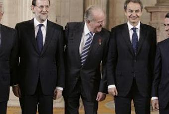 Juan Carlos I, entre los expresidentes Felipe González (1ºd) y Mariano Rajoy (2ºd) y José María Aznar (1ºi) y José Luis Rodríguez Zapatero (2ºi), en 2013.