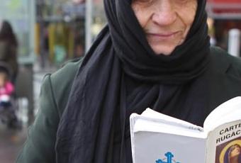 Griega piadosa, ortodoxa, pidiendo una limosna a la salida del metro Cluny / La Sorbonne, 1 noviembre 2011. Foto JPQ.
