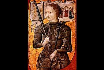 Conocida como la Doncella de Orleans, nació posiblemente el 6 de Enero de 1412 en Donrémy, en la región de la Lorena Francesa. Según nos cuentan, fue una visión divina la que motivó a participar en la actividad militar. Con 17 años encabezó el ejército real francés en campañas que revitalizaron la facción de Carlos VII durante la Guerra de los Cien Años.