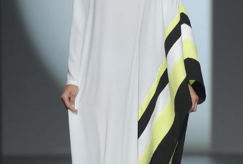 La diseñadora Juana Martín ha presentado su colección llamada TEN-PLÉ haciendo hincapié al hippie-chic con grandes influencias de los años 60 y el folk de los 70 pero sin renunciar a sus raíces andaluces. Los diseños han inundado la pasarela de estampados florales, crepés de seda estampado, apliques florales, lunares, volantes y geometrías. La fluidez y las aperturas estratégicas y también han tenido cabida en el desfile. La paleta de colores ha girado en torno al blanco y al negro con toque de color a través de verdes lima, dorados y vinilos en negro para crear un efecto brillante.