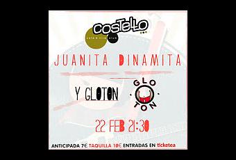 Juanita Dinamita es un proyecto que nace con la sana y firme intención de seguir sorprendiendo en la escena musical, el proyecto aterriza con nuevos temas y quieren presentarlos en directo. Glotón por su parte hará lo que debe hacer, presentarse y comerse sonoramente el escenario de la sala Costello Club.