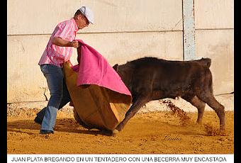 “Pues bueno, no sé hasta donde llegaré con el toro, el caso es que me entrego y lo doy todo, pero si no llego a nada, quiero que me recuerden como una persona que ha defendido la fiesta a muerte, que ha dejado muchas veces hasta su trabajo abandonado para dedicarle tiempo al toro y que he luchado hasta la muerte por tener un huequecito al lado de él”. Esta fue la respuesta que el bueno de Juan Plata me dio cuando le pregunté hasta donde quería llegar en el mundo del toro… Una respuesta propia de un loco-enamorado de la Fiesta de los Toros hasta sus últimas consecuencias. Así es Juan Plata, un personaje peculiar, servicial, fiel a sus amigos, que forma parte del paisaje urbano de la Aldea Quintana, su cuna, y que no se las da de nada. Solo presume de su tierra, su afición y de tener muchos amigos taurinos. Un tío cabal, de los que quedan pocos, añado yo, que le conozco bien.