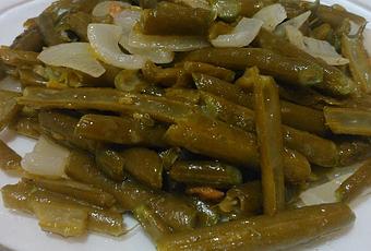 - Pelamos,lavamos y troceamos judías verdes,la cebolla y los tomates.