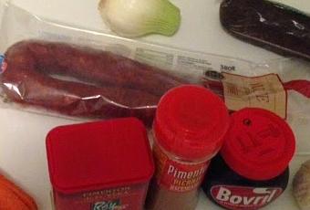 - 350g de Judiones o de la legumbre que tengas.1 chorizo para cocinar, en mi caso, uno de Dia.