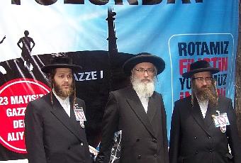 A su llegada a la sede central de la Fundación de Ayuda Humanitaria IHH, organizadores del convoy atacado, el rabino Yisroel Dovid Weiss expresó a Rebelión su resuelta oposición a la existencia del estado de Israel y su determinación de trabajar para que los crímenes cometidos por éste no queden impunes.