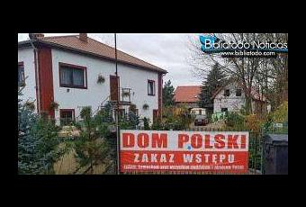 El letrero en la casa de huéspedes Dom Polski “Hogar polaco” en Cesarzowice declara “Entrada prohibida a los judíos, a los comunistas, a todos los ladrones y traidores de Polonia“, sobre un fondo rojo y blanco, los colores nacionales de Polonia.