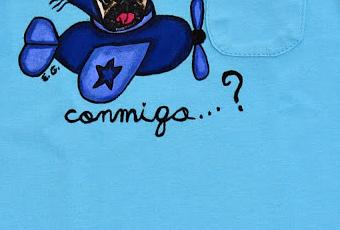 El niño, a punto de cumplir un añito...su papi, piloto (de ahí lo del avión, claro), al niño le requete-encantan los perros (normal, como a casi todos los niños, verdad? :)), de ahí lo del Carlino, que con su carita lo dice todo...porque como el peque no sabe aún hablar...alguien tendrá que traducir las ganas que tiene de que juegues con él, no?? :)