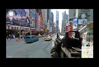 Navegar con tu avatar en POV por el “mundo real” con un rifle de asalto M4A1 para dispararle a las personas capturadas por Google Street View –a la Call of Duty– es una simulación demasiado fantástica y violenta para las buenas conciencias. Google Shoot View, desarrollado por la agencia de marketing holandesa Pool Worldwide, causó sensación por varios días, ofreciendo a usuarios recorrer con un arma de alto calibre los mapas de 360 grados de Google — esas copias baudrillard-borgeana de la realidad que amenazan con reemplazarla– y aunque las personas y los objetos no se veían afectados por el fuego virtual, de cualquier forma había algo en el juego que perturbaba nuestra representación del mundo y su seguridad. (Uno puede imaginar una escena hipotética, un jugador navega por su colonia y se encuentra con que el coche de Google lo ha tomado haciendo una diligencia, entonces apunta al rifle a la sien y se dispara, cometiendo un autoasesinato simbólico).