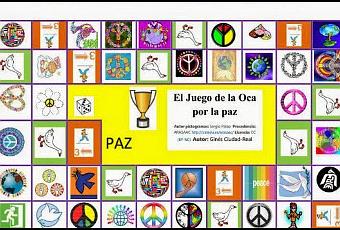 Es un original tablero cuyas casillas están formadas por distintos símbolos de la Paz y que podéis descargar en formatos A3, A4 y en .doc editable , junto a las instrucciones del juego, desde este enlace.