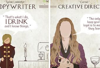 De este modo, algunos de los personajes más famosos de "Juego de tronos" cambian el rol que tienen en la serie por puestos como ejecutivo de cuentas, diseñador, cliente o director creativo. Una buena forma de hacer ver que, a veces, la vida en la agencia de publicidad no dista tanto de lo que se vive en la popular ficción de televisión...