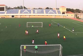 En el siguiente ejercicio vamos a ver a nuestros chicos de la Escuela de Fútbol Base AFA Angola, en un ejercicio de posesión de balón formado por 2 equipos de 4 jugadores con 4 apoyos externos que siempre van con el poseedor de la pelota (se colocaran a ambos lados de la línea de gol).