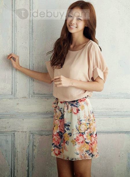 1) Vestido con la parte da arriba con estampado de flores y la de abajo en color rosado y que podéis ver mejor aquí