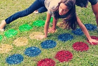 El clásico juego twister pero esta vez en el césped de nuestra casa. Podemos utilizar pintura en spray en diferentes colores para marcar tierra, una caja de cartón en la que hemos cortado un círculo en la base que nos servirá como plantilla e ir pintado las diferentes filas de círculos de colores, eso sí para que nos queden alineados y a la misma distancia nos ayudaremos de hilo o lana.