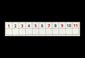 En las once casillas superiores irán los números del 1 hasta el 11, y en las casillas inferiores colocaremos las fichas.