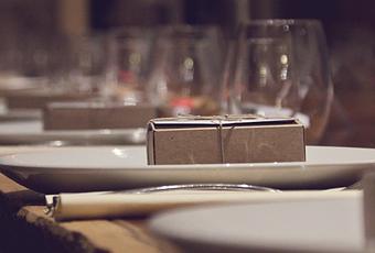 Al entrar en el comedor los compis de curro tenían que buscar su nombre en la mesa, junto a su nombre indicaba que platos habían escogido del menú. Ya sabéis que en estas cenas se selecciona el menú semanas antes, luego hay mucha gente que no se acuerda que plato tenía y es un follón! Con las targetitas con el nombre y la indicación de los platos se evitan errores y todo fluye más. Además de este modo era más fácil que encontraran su babo. Junto a los platos también puse algunas gafas, bigotes, barba de papa noel de cartón, para que se hicieran fotos divertidas.