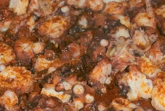 Si no lo vamos a usar en ese mismo momento, lo dejamos enfriar y después lo metemos en el frigo. Si lo vamos a utilizar cogemos las tijeras de cocina lo cortamos a trocitos, ni muy gruesos ni muy finos, a ser posible los ponemos en un recipiente donde no se queden amontonados, más vale que sea sólo una capa de pulpo. Una vez cortados, lo ponemos en el microondas para que esté caliente y después le echamos la sal, el pimentón dulce o picante o ambos y aceite generosamente. Y ya está listo!! y cómo está de bueno...
