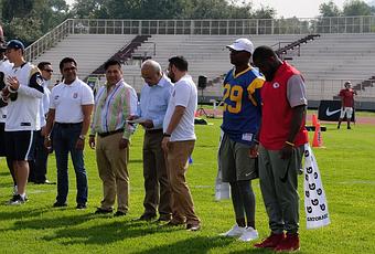 En noviembre de este año la NFL regresa a México con el juego entre Rams y Chiefs en el Estadio Azteca. Por tal motivo, jugadores de ambos equipos fueron invitados a participar en el programa de Tochito y Play 60 que la liga imparte anualmente en nuestro país. A modo de promoción para el partido, Michael Brockers y Luis Perez de Los Angeles Rams, junto a Reggie Ragland de los Kansas City Chiefs, convivieron y entrenaron con cerca de 400 niños en el campo de las Aguilas Blancas del IPN.