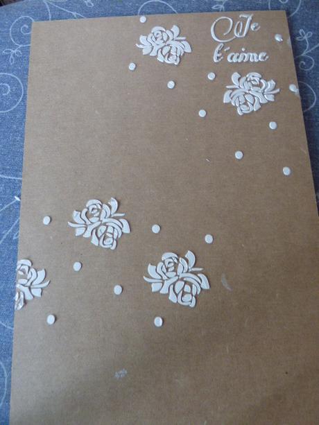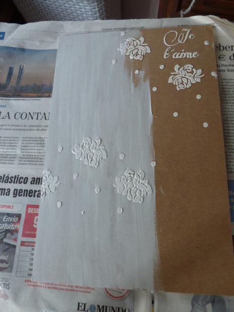 Sobre una tablilla de DM finito he hecho un relieve con esta plantilla novedad de esta semana pasadaEste stencil lo he hecho de 25 x 25cm para que sirva en cajas grandecitas, pero ya sabeis que cualquier plantilla se puede hacer del tamaño que os interese.