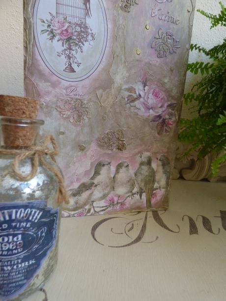 Las zonas más oscuras de los pajaritos las he pintado con el tostado metalizado. Alrededor del óvalo tambien he difuminado un poco