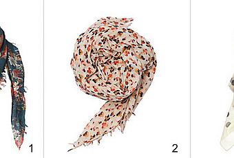1. Pañuelo estampado flores New Look 13.90€ / 2. Fular estampado palomitas Mango 15.95€ / 3. Pañuelo estampado topos Marc by Marc Jacobs 227€