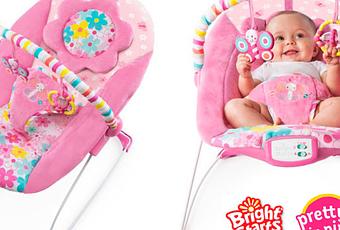 El asiento de la hamaquita Butterflies es muy suave y tiene adorables adornos bordados. Hay una almohada desmontable para apoyar la cabecita y una barra de juguetes que se quita con una sola mano para mayor comodidad de los papás.
