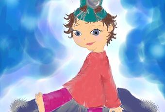 Los duendes, empapados y despeinados, supieron también que lo iba a lograr. Empezaron a tirarle piedrecitas que le marcaran el camino y Julia las seguía segura de que arriba del todo, sólo estaría a un saltito pequeñito de su destino. Cuando llegó, estiró los brazos todo lo que pudo, se puso de puntillas, cogió aire y … de pronto su mano se entrelazó con la del último duende de una larguísima cadena de ellos que pendía de la punta de la Luna creciente.