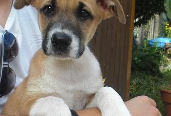 Julieta es una cachorrona tamaño mediano-grande, parece cruce de Mastin con algun perro mediano, (será tamaño Boxer)