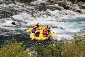 Me desperté de la siesta y a las dos de la tarde estaba en el centro para un paseo de rafting. Sí, rafting en el río Chimehuin. Fui con la empresa Picurú Viajes y Turismo, la única agencia en Junín de los Andes (creo). Estaba cansada pero debía ser ese día o nunca ya que al otro día iba a cambiar el clima. Sería el fin de los preciosos días soleados. La actividad se realiza yendo hacia el Lago Huechulafquen (de donde nace el río) por lo que era posible mirar la grandiosidad del volcán Lanín desde las aguas. Lamentablemente no saqué ninguna foto porque no llevé la símil GoPro y no iba a arriesgar mi cámara en medio del rafting. A veces hay que disfrutar algunas cosas sólo reteniéndolas en la memoria.