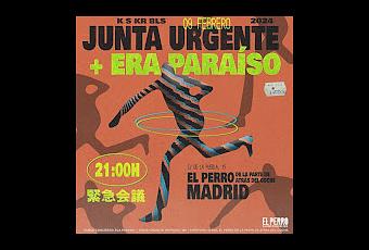 Este viernes, se unirán Junta Urgente y Era Paraíso en El perro de la parte de atrás del coche. Este viernes hay dos bandas jóvenes que quieren presentar canciones, por un lado Junta Urgente y por otro Era Paraiso.Junta Urgente son una formación que sigue modelándose, creando sus texturas y que llegan a otra sala de Madrid, será en El perro de la parte de atrás del coche, un show urgente, cuanto menos. Era Paraiso son la otra banda, una formación de sonidos frescos, directos y elegantes que quieren revolucionar un escenario otra vez.