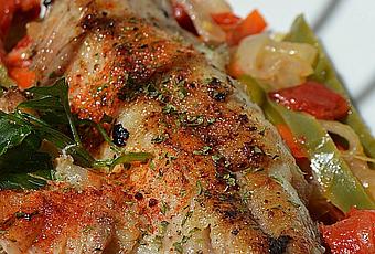 - Servimos el salteado en los platos y encima colocamos los lomos del jurel.
