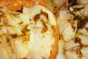 Para ello primero dejaremos los lomos sin espina y sin piel, quedándose únicamente la carne. Lo pondremos en un recipiente y taparemos los lomos con vinagre, poniendo después la misma cantidad de agua (50% de cada una) con unos 6 o 7 dientes de ajo cortados no muy pequeños ya que luego los tendremos que quitar y un puñado de sal. Una vez hecho lo dejaremos tapado herméticamente en la nevera 24 horas.