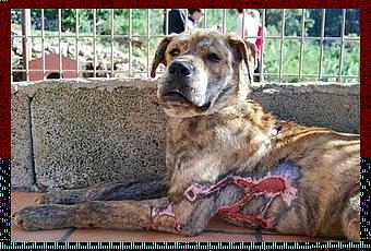 Hay que ser malo por naturaleza, cruel de alma, tener podrido el corazón. ¿Puede alguien asegurarme que en el interior del malnacido que lo dejo así no hay un maltratador en potencia?. Y es a los perros a los que clasifican como PPP, cuando son a algunos humanos a los que se deberia tatuar PPP (Personas Potencialmente Peligrosas). Conti apareció tirado en un contenedor de basura con la mandíbula destrozada y estas heridas tan horribles que veis. Estas cicatrices son antiguas mordeduras de otros perros. Le habrán utilizado seguramente como sparring. Le falta el ojo izquierdo. Tirado a la basura como un despojo... Conti ...esta en APANOT ( Tenerife). Estamos esperando a que se recupere para operarle de la mandíbula. La tiene destrozada. Después de 15 días en una clínica veterinaria nos avisaron para llevárnoslo. Ahora esta bien en comparación a como fue encontrado. Aun así Conti es increíblemente bueno y cariñoso. Una buena amiga de la protectora que reside en La Laguna se ha ofrecido a cuidar de él toda la vida, ahora ella esta en la península pero regresa en Enero. Si esta mejor podrá irse con ella. Por favor DIFUNDIR para que la gente vea el horror del maltrato que sufren los animales en cualquier parte de España y para exigir de una puñetera vez una Ley nacional de Protección Animal. ¡¡¡¡JUSTICIA PARA ELLOS!!!!