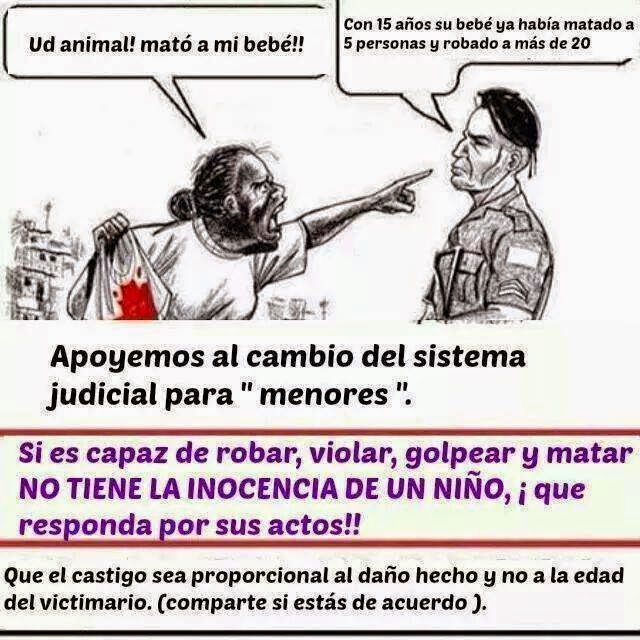 En esta sociedad de hoy que esta en una imparable decadencia, lamentablemente el factor de la delincuencia se presenta hasta en chicos con poca edad, este hecho sin duda alguna debe ser controlado, pues una sociedad que pierde su integridad desde sus futuras generaciones, esta condenada a la peor podredumbre que se pueda imaginar.