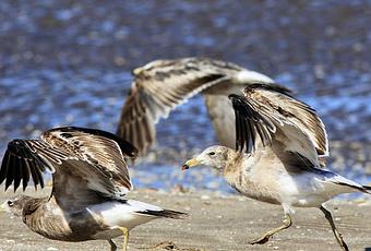 Entre las únicas aves que encontré para fotografiar de cerca en la costa donde siempre voy estaban unos cuantos juveniles de gaviota cangrejera (Larus atlanticus) especie que en esta época se encuentra en pocas cantidades ya que migran hacia la zona de Bahía Blanca a procrear, por lo general quedan durante la primavera y el verano los individuos juveniles o inmaduros, quizás algún que otro adulto. Es una especie vulnerable de la que no hay demasiados ejemplares.
