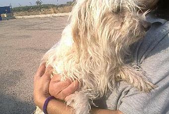 Esta pequeñina sucia y desgreñada es Kalea, su nombre significa brillante, porque esperamos que dentro de poco esté brillando no solo físicamente, sino de felicidad. Su historia es muy triste, la tiraron desde un coche en un camino, la gente que lo vió llamó a la perrera, cuando fueron solo encontraron sus cachorros de 20 dias, uno muerto atropellado, otro la lado, y otro ahogandose en una acequia, nos avisaron porque en la perrer no comian y se estaban muriendo, asi que fuimos a por ellos. Una semana o asi despues volvieron a recibir la llamada, habia aparecido la mama con otro cachorro, fueron a por ellos y esta vez si los encontrarom, pero el otro cachorro murió en la perrera a los pocos dias. Y ahora solo queda allí Kaela, es una perrita mona, pequeña, adoptable, cruce de caniche, pero está llena de nudos y de suciedad, y ademas es miedosita cuando se arrima alguien se pone a ladrar y a chillar, pero lo único que tiene es miedo y pena, se deja coger y enseguida se agacha en plan de sumisión, solo necesita salir de allí, estar en una casita tranquila, olvidar sus miedos y comenzar a vivir. Si alguien puede ayudar a Kalea, está en un pueblo de Toledo,