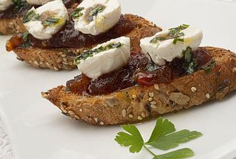 Bocados de queso Oh My Cheese rellenos de higo con mermelada de tomate
