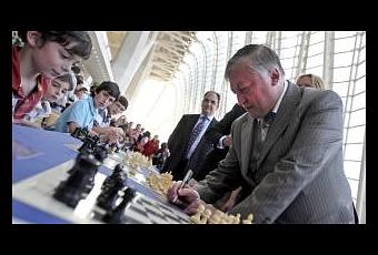 El ajedrecista ruso Anatoli Kárpov ha reproducido este miércoles en la Ciudad de las Artes y las Ciencias de Valencia (CAC) la histórica partida que ganó contra Spaaskii en 1974, con motivo de la exposición del ajedrez gigante de Ripollés, una obra con 32 figuras de dos metros de altura y 80 kilos de peso realizada en cristal de Murano.