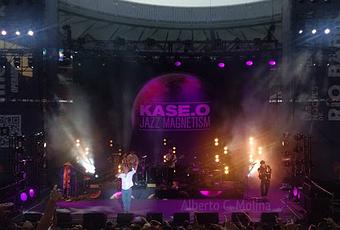 Si hubo quien flipó con la sintonía de 'Barrio Sésamo' a modo de intro o con Sopa de caracol en los últimos compases del concierto, quizás también se sorprendió al ver el bailecito que el maestro de ceremonias se marcó al filo de las 22:00 al son de A solas con un ritmo, otro de aquellos 15 temas que registró con una banda de Jazz en 2011. Por cierto, banda de Jazz formada por 'Escandaloso Xpósito' (saxo), Dani Comas (guitarra), Juan Pablo Balcazar (bajo eléctrico y contrabajo) y Dani Dominguez (batería) que arropa a Kase.Oen esta gira y a la que presentó antes de A solas con un ritmo