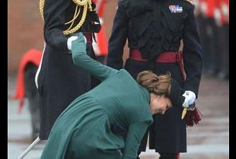 Eso es literalmente "meter la pata" con estilo. Los Duques de Cambridge asistieron al desfile de San Patricio y saludaron además al Batallón de Guardias Irlandeses en el cuartel de Mons, en Aldershot, Hampshire.