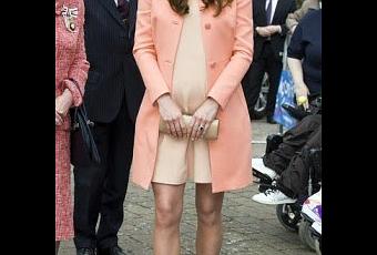 Kate Middleton vestida en color melocotón, de casi siete meses de embarazo